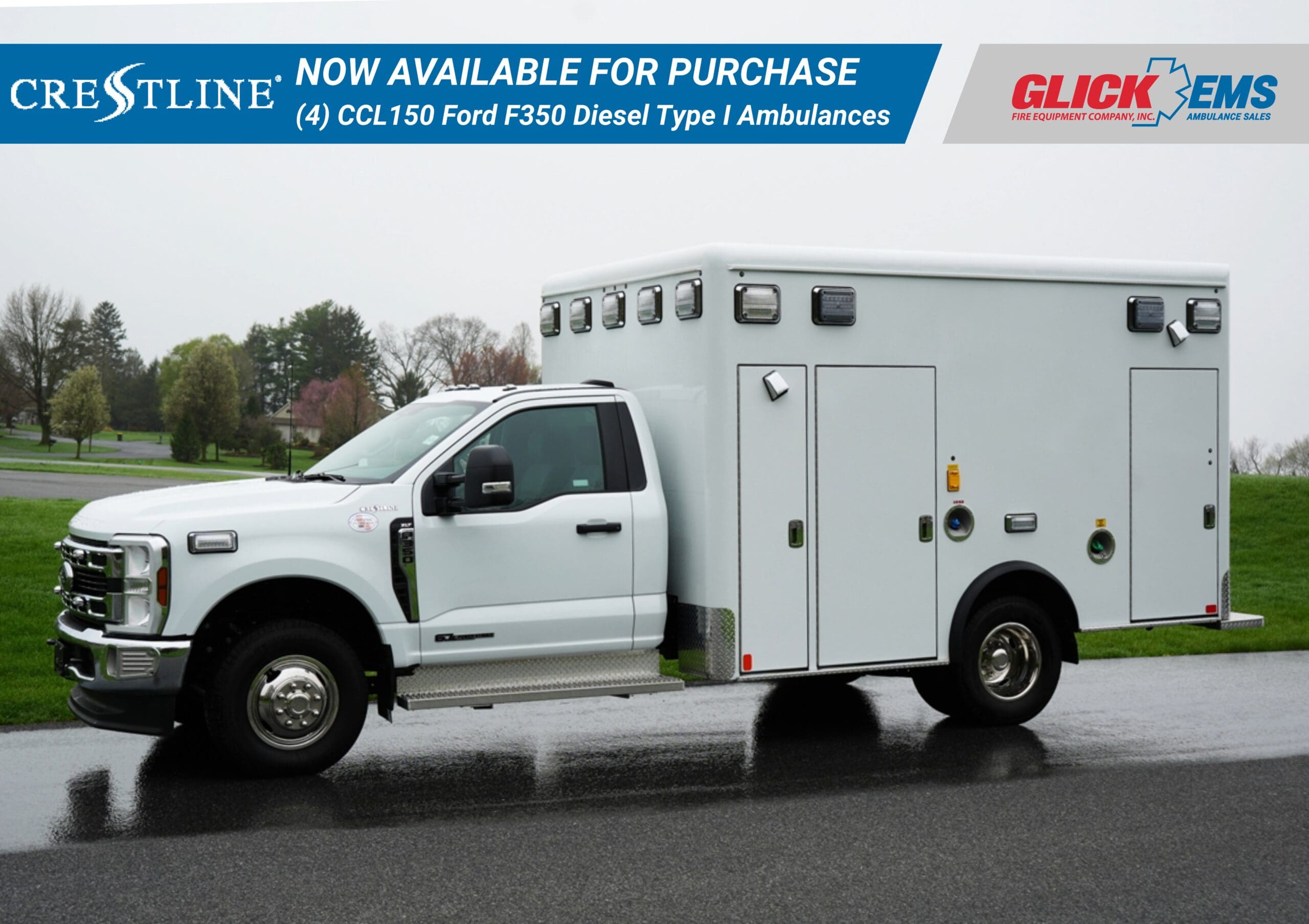 There are still many options available when you purchase a stock ambulance from Glick Fire Equipment. Interior features can still be changed. Exterior lighting and camera systems can also be adjusted. Our stock ambulances for sale are typically white. Custom paint and graphics options are always available.