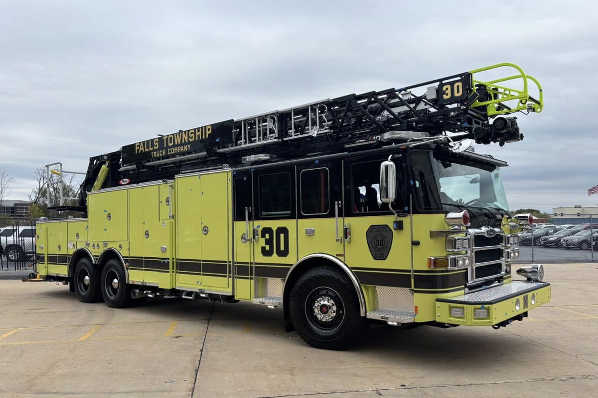 Thank you and Congratulations to Falls Township Fire Company #1 of Bucks County on the delivery of their new Pierce Enforcer 107’ Ascendant Aerial!