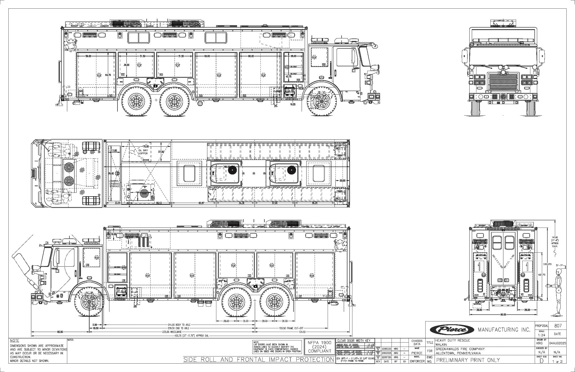 Additional features include a Harrison 15 kW hydraulic generator with dual cord reels, front and rear winches, multiple hitch receivers, body-mounted swivel anchor points, roof-mounted ladder storage, Whelen emergency lighting, and HiViz scene lighting.