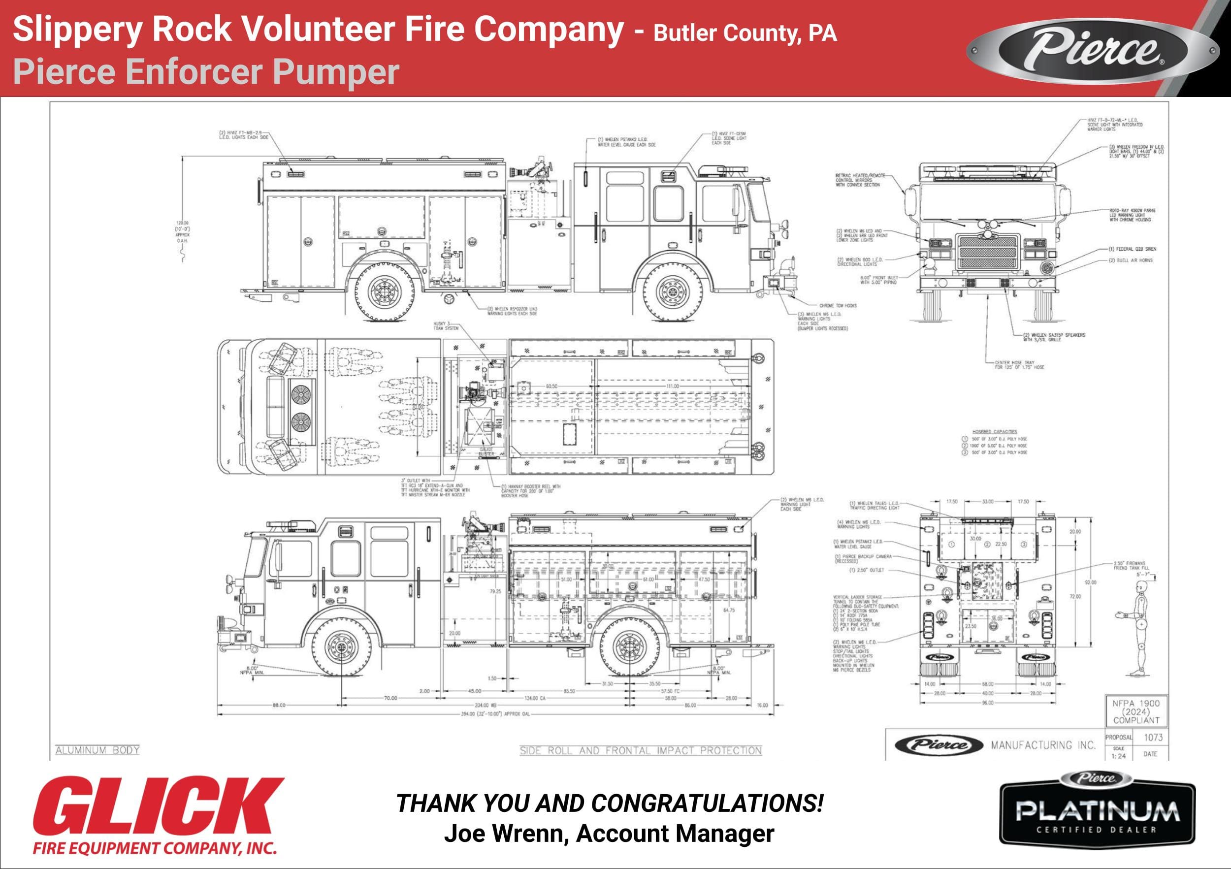 Thank you and congratulations to Slippery Rock Volunteer Fire Company and Rescue Team of Butler County PA, on the purchase of a Pierce Enforcer Pumper!